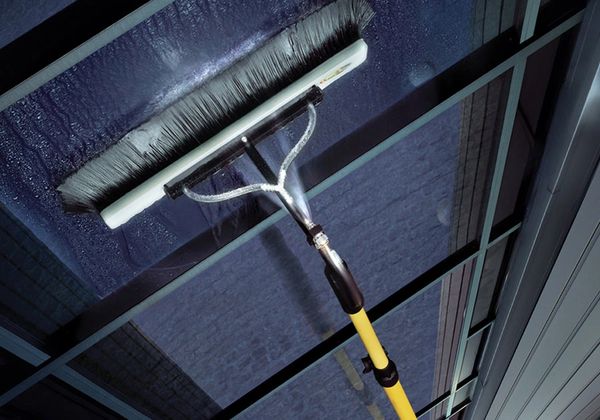 Deionized water fed pole window cleaning utilizes advanced purification techniques to remove all minerals and impurities from the water, which is then delivered to a specialized cleaning brush at the end of a long pole.